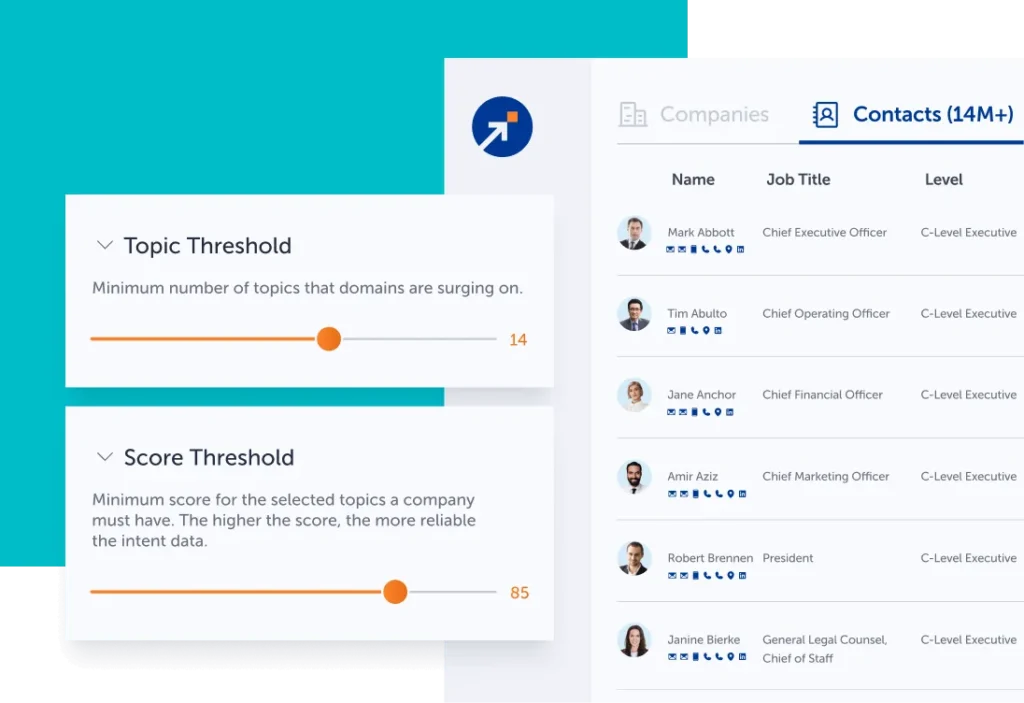 • Buyer Intent data to help you quickly identify and reach ready-to-buy prospects. It also helps you prioritize your leads to speed up your sales cycle.