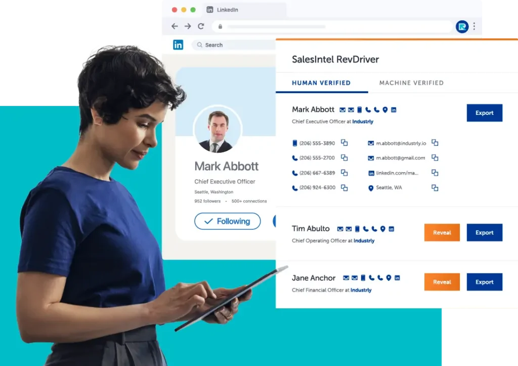Use the RevDriver Chrome extension on LinkedIn, Sales Navigator, or any company website to find relevant and actionable contact information right when you need it.